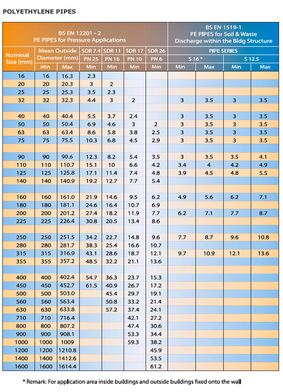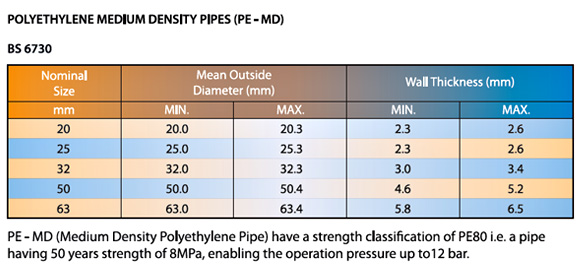 POLYETHYLENE PIPES SPECIFICATIONS