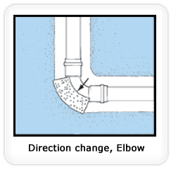 Usually good compacted backfill will provide the necessary anchor for side thrust. Concrete blocking is the most commonly recommended method of blocking. Concrete is placed directly on the fitting against the line of thrust. The concrete must also pour against undisturbed earth.